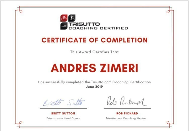 Andres Zimeri holds a Bachelor of Recreation and Sport Management with a minor in marketing. He is certified Trisutto Coach, Training Peaks Level 2 coach and also holds a Personal Trainer Certificate from the International Sports Science Association and is certified by the American Red Cross Association in cardiopulminary resuscitation (CPR) and automated external defibrillation (AED).